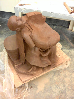 This was to be my personal rendition of La Pieta featuring President Roslin and Admiral Adama. The clay won this battle. I had a difficult time working with such a wide base 3 feet by 4 feet. By the end of the semester I ended up with this...